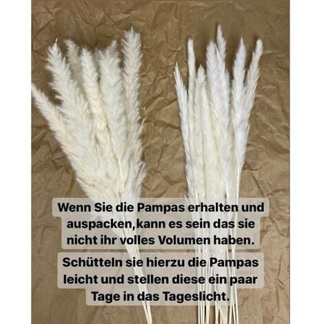 - colore: bianco; Confezione da 15 pezzi di erba di pampa essiccata; Le grasse pampas possono essere facilmente accorciate alla dimensione desiderata e adattate al vostro ambiente abitativo, per adattarsi a qualsiasi vaso.