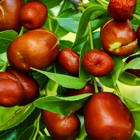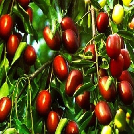 Il Giuggiolo, appartenente alla famiglia delle Rhamnacee, é originario dell’Africa settentrionale e della Siria ma successivamente esportato in Cina e in India e diffuso anche nel Mediterraneo. E’ coltivato sia per i suoi buonissimi frutti che come pianta ornamentale infatti le sue foglie sono di colore verde lucido brillante e sono molto resistenti ai climi caldi e secchi. Il giuggiolo produce frutti ovoidali dal sapore leggermente acidulo simile a quello delle mele e hanno una buccia sottile e liscia di color rosso scuro, c’è un solo nocciolo all’interno dei frutti, simile a quello delle olive. La fioritura si ha in primavera, verso il mese di maggio ed i suoi fiori ermafroditi sono giallognoli. La struttura dell’albero è molto articolata e i rami sono ramificati, contorti e ricoperti di spine. Il giuggiolo predilige posizioni in pieno sole. Va messo a dimora in Autunno preferibilmente alternandolo a peschi e mandorli. Durante i primi 3-4 anni è necessario innaffiare periodicamente le piante di giuggiolo affinché sia stimolato a sviluppare il suo apparato radicale in profondità e la sua resistenza alla siccità. Il giuggiolo risulta essere una pianta che necessita di poche risorse e di poca manutenzione. Per ottenere una copiosa raccolta dei frutti sarà sufficiente distribuire ogni anno un concime azotato per stimolarne la crescita e potandolo spesso in Primavera inoltrata ogni tre anni. Le dimensioni e laspetto possono variare a seconda della stagione e del periodo in cui viene acquistata.