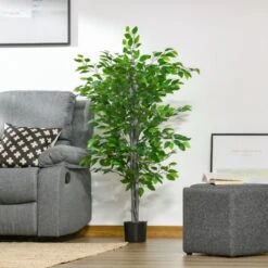 HOMCOM Pianta Artificiale Di Ficus Alta 135cm Con Vaso Per Interno Ed Esterno – Verde
