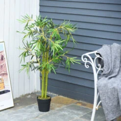 Outsunny Bambù In Vaso Artificiale, Decorazione Da Interno Ed Esterno, Altezza 120cm – Verde