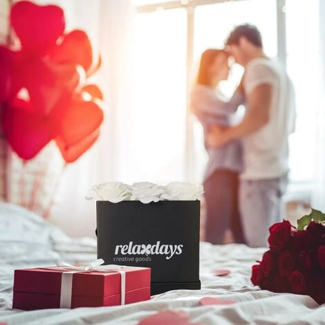 L’elegante scatola con roseè l’evoluzione moderna del classico mazzo di rose, con cui potete godere ognigiorno della vista di meravigliosi fiori. La combinazione tra la scatola nera ele 9 rose in stoffa realistica rende il box un’ attrazione per gli sguardinella vostra casa. Il bouquet di rose è ideale come decorazione per il tavolo oper il matrimonio, ma anche come regalo per San Valentino o per il compleanno -la realizzazione a mano dei fiori offre un piacere duraturo per anni.